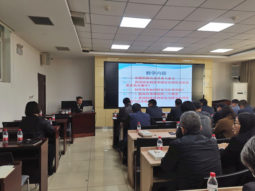 省委黨校教授曹建民通過鮮明生動的事例總結概括了中國特色社會主義制度的十三個顯著優(yōu)勢,并對如何強化制度執(zhí)行力,加強制度執(zhí)行的監(jiān)督等方面進行了講解,通過對這一專題知識的學習,廣大黨員及入黨積極分子更加深刻的了解到中國特色社會主義民主政治的制度優(yōu)勢與治理效能日益凸顯。