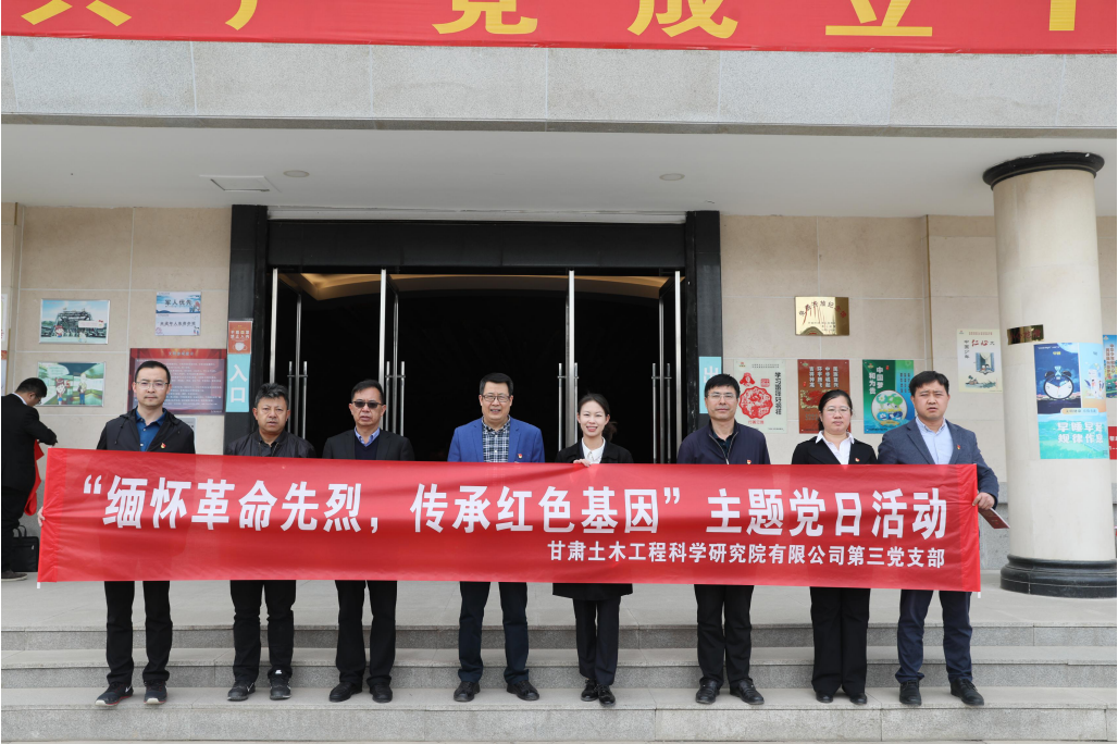 2021 年 4 月 28 日甘肅土木工程科學(xué)研究院有限公司第三黨支部組織黨員到蘭州市烈士陵園參加“緬懷革命先烈,傳承紅色基因”主題黨日活動。支部黨員走進(jìn)紅色教育基地參觀見學(xué),瞻仰革命先烈留下的遺跡,首先瞻仰了紀(jì)念碑,隨后參觀了紀(jì)念館。在紀(jì)念館內(nèi),一幅幅照片、一件件展品、一面面場景,生動再現(xiàn)了革命先烈英勇抗敵的情景,在場人員無不為當(dāng)年革命前輩們的英勇壯舉所震撼。在鮮紅的黨旗下,黨員佩戴黨徽,舉起右手、握緊拳頭,莊嚴(yán)宣誓:“我志愿加入中國共產(chǎn)黨……永不叛黨!”