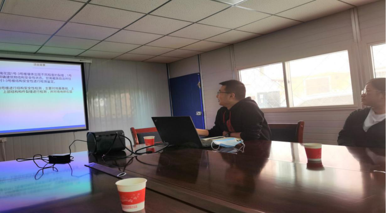 張健一行首先觀摩了結(jié)構(gòu)加固中心承接的甘南州2020年大砂坪甘南花園老舊小區(qū)改造項(xiàng)目現(xiàn)場(chǎng),聽取了結(jié)構(gòu)加固中心何志峰有關(guān)“甘南州 2020 年大砂坪甘南花園老舊小區(qū)改造項(xiàng)目(一期)”糾偏加固方法、施工組織管理及安全措施等的講解;工程質(zhì)量檢測(cè)部年輕技術(shù)人員羅軍峰同志對(duì)“蘭州市口腔醫(yī)院異地新建項(xiàng)目基坑監(jiān)測(cè)項(xiàng)目”進(jìn)行了交流學(xué)習(xí);最后由巖土工程研究所呂永平同志對(duì)“蘭州地區(qū)大厚度濕陷性黃土場(chǎng)地地基處理工程實(shí)例”進(jìn)行了講解。