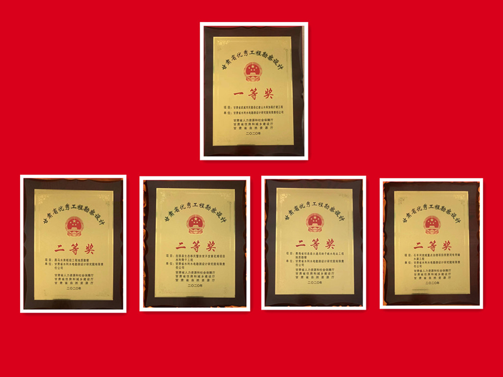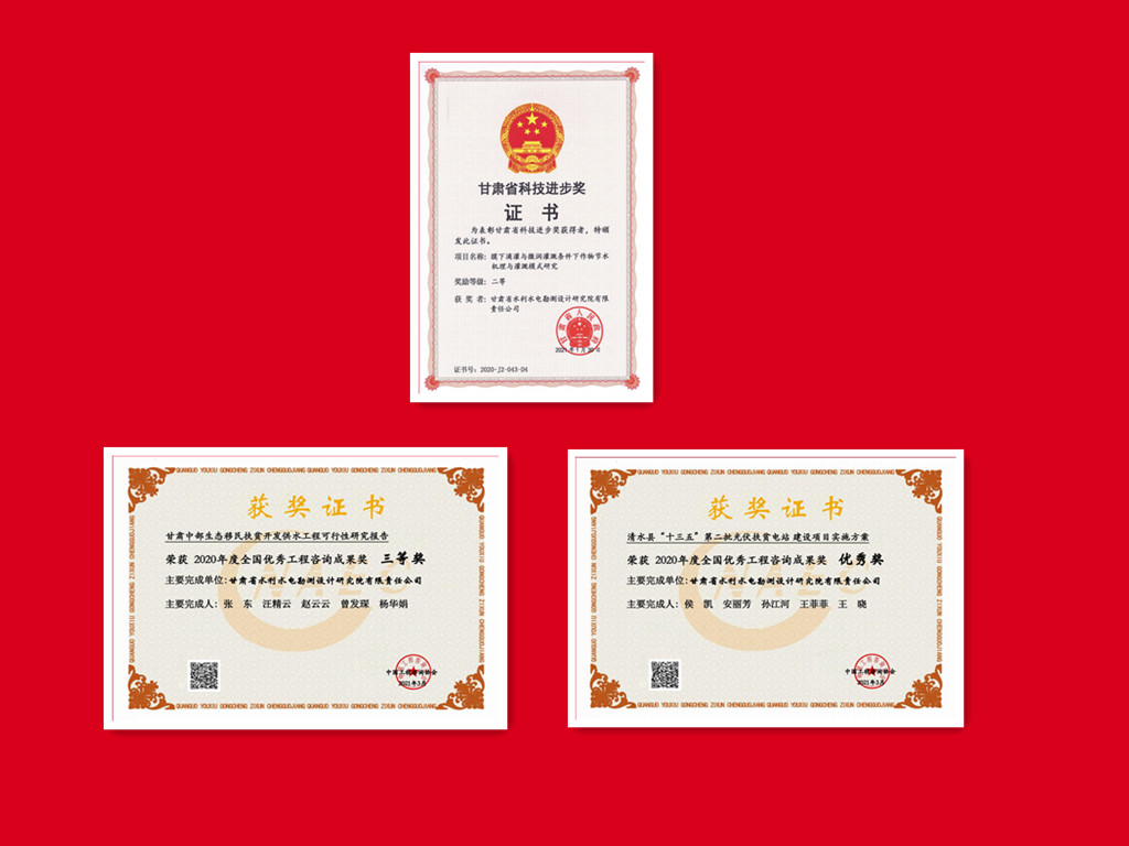 科研成果在工程實踐中開花結果,多個項目獲技術表彰獎勵:《民勤縣紅崖山水庫加高擴建工程》獲甘肅省優(yōu)秀工程勘察設計一等獎;《石羊河流域重點治理項目西營河專用輸水渠工程》《古浪縣生態(tài)移民暨扶貧開發(fā)黃花灘項目水利骨干工程》《大通河納子峽水電站工程地質勘察》《昌馬水庫樞紐工程地質勘察》分別獲甘肅省優(yōu)秀工程勘察設計二等獎;《甘肅中部生態(tài)移民扶貧開發(fā)供水工程可行性研究報告》獲全國優(yōu)秀工程咨詢成果獎三等獎;《清水縣“十三五”第二批光伏扶貧電站項目》獲全國優(yōu)秀工程咨詢成果獎優(yōu)秀獎。