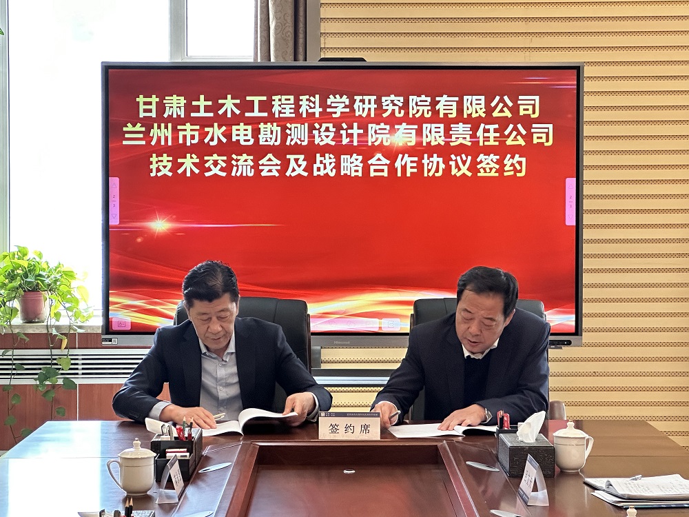 近日,甘肅土木工程科學(xué)研究院有限公司(以下簡稱“甘肅土木院”)與蘭州市水電勘測設(shè)計(jì)院有限責(zé)任公司(以下簡稱“蘭州市水電院”)在蘭州簽署了戰(zhàn)略合作協(xié)議。此次簽約,標(biāo)志著兩家公司在土木工程及水電勘測設(shè)計(jì)領(lǐng)域正式開啟全面深入的合作模式。