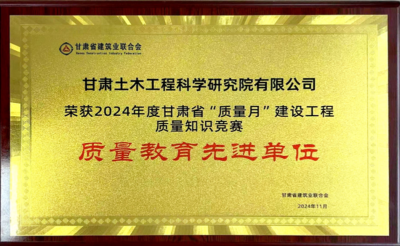 甘肅省建筑業(yè)聯(lián)合會(huì)舉辦的2024年度甘肅省“質(zhì)量月”建設(shè)工程質(zhì)量知識(shí)競賽結(jié)果已經(jīng)揭曉,我公司榮獲“質(zhì)量教育先進(jìn)單位”稱號(hào)。