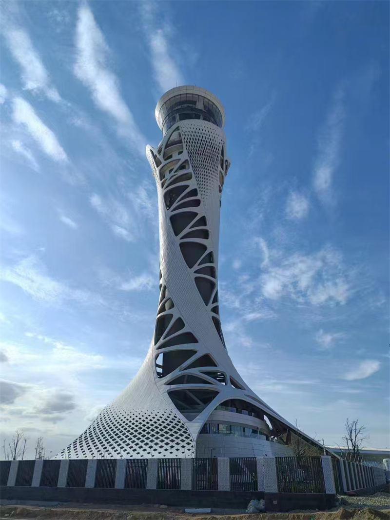 項目總投資13.43億元,塔臺建筑高度99.9米,是全國空管分局有史以來建設(shè)規(guī)模最大、投資最大的空管建設(shè)項目,創(chuàng)造了多項分局站建設(shè)第一。項目總體以“敦煌飛天”與“絲綢之路”為靈感,塔臺采用鋼結(jié)構(gòu)斜交網(wǎng)格外框+鋼筋混凝土核心筒設(shè)計,空管工作區(qū)采用鋼筋混凝土框架+首層BRB支撐+基礎(chǔ)橡膠隔震支座設(shè)計,鋼結(jié)構(gòu)總量達3561噸。