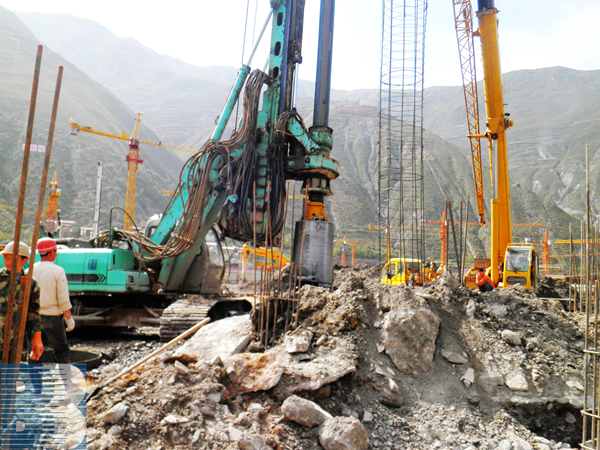 舟曲8.8特大泥石流災后重建峰迭新區(qū)樁基施工驗槽現(xiàn)場