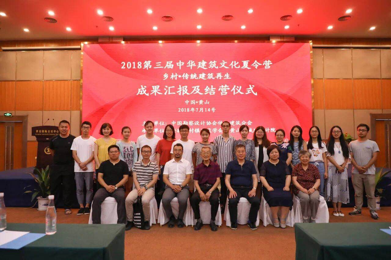 2018年7月14日,由中國勘察設(shè)計協(xié)會指導(dǎo)、中國勘察設(shè)計協(xié)會傳統(tǒng)建筑分會主辦、安徽省村鎮(zhèn)建設(shè)學(xué)會和黃山市城建設(shè)計院共同承辦的以“鄉(xiāng)村·傳統(tǒng)建筑再生”為主題的第三屆中華建筑文化夏令營結(jié)營儀式在黃山國際大酒店舉行。清華大學(xué)建筑學(xué)院教授單德啟、中勘協(xié)傳統(tǒng)建筑分會副會長黃滋、中勘協(xié)傳統(tǒng)建筑分會秘書長王新華、中勘協(xié)傳統(tǒng)建筑分會常務(wù)理事李早、安徽省村鎮(zhèn)建設(shè)學(xué)會理事長程堂明、黃山市城建設(shè)計院院長陳繼騰等領(lǐng)導(dǎo)以及營員等約90人參加了結(jié)營儀式。黃山市城建設(shè)計院副院長陸笑旻主持會議。