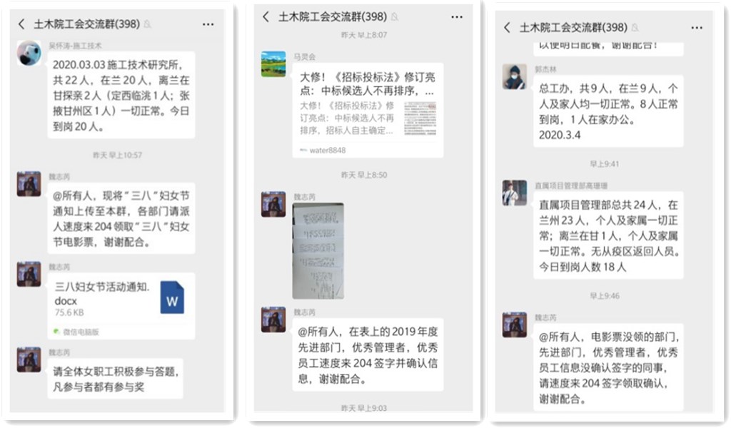 依托微信平臺(tái),加強(qiáng)對(duì)公司日常工作管理、信息發(fā)布、疫情發(fā)展趨勢(shì)、職工人員信息進(jìn)行收集管理,做好日常管理、防控、監(jiān)督、宣傳工作。