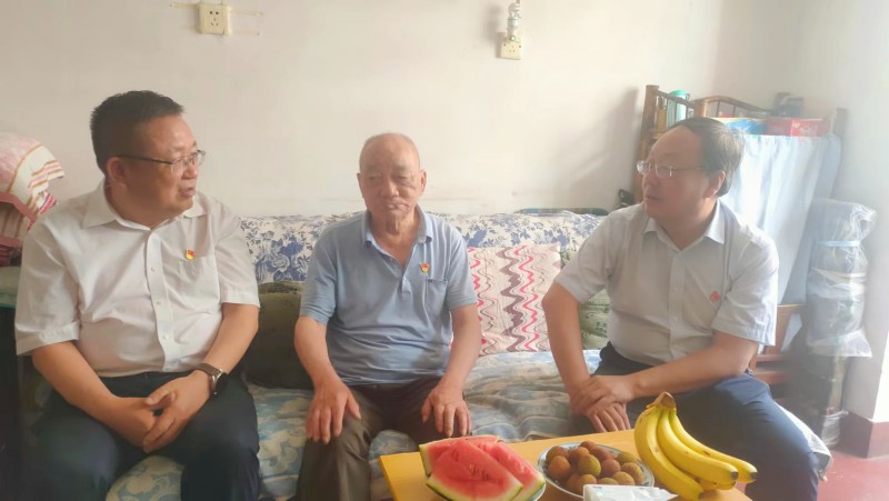 黨委副書(shū)記、總經(jīng)理張佩峰對(duì)退休老黨員吳金海進(jìn)行了慰問(wèn),與老人拉家常、噓寒問(wèn)暖,了解他的生活情況和身體狀況,送去了節(jié)日的問(wèn)候。