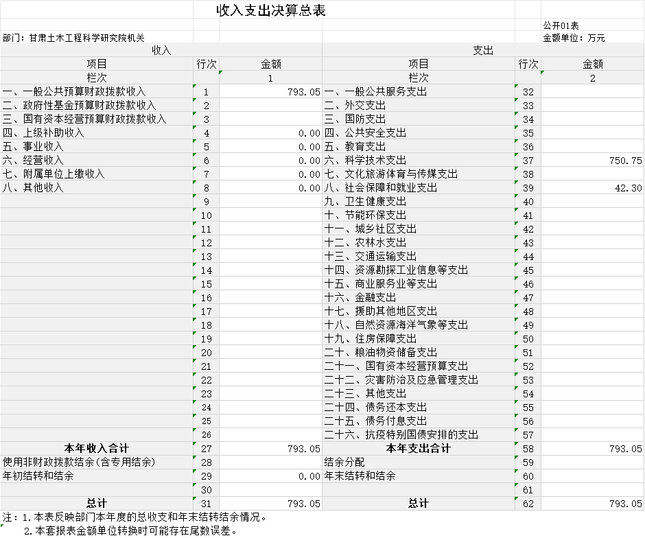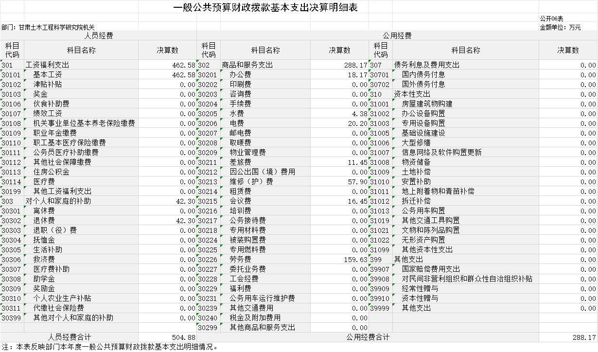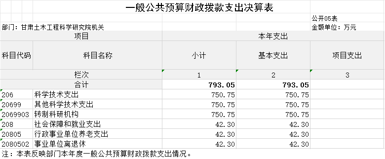 2023年度財(cái)政撥款收、支總計(jì)均為793.05萬(wàn)元。與上年相比,各增加0.94萬(wàn)元,增長(zhǎng)0.12%。主要原因是社會(huì)保障和就業(yè)收、支較上年增加0.94萬(wàn)元。其中:科研機(jī)構(gòu)人員經(jīng)費(fèi)504.88萬(wàn)元,占比63.66%;公用經(jīng)費(fèi)288.17萬(wàn)元,占比36.34%。