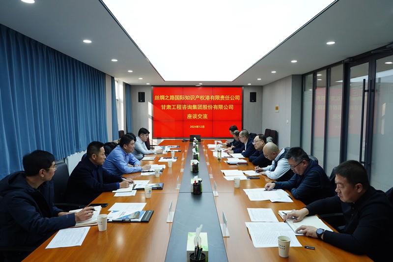 12月4日,甘肅工程咨詢集團(tuán)黨委副書(shū)記、總經(jīng)理張佩峰與來(lái)訪的絲綢之路國(guó)際知識(shí)產(chǎn)權(quán)港有限責(zé)任公司黨委書(shū)記、董事長(zhǎng)賀泉茗一行座談,圍繞知識(shí)產(chǎn)權(quán)全鏈條業(yè)務(wù)、科技成果轉(zhuǎn)化、數(shù)字經(jīng)濟(jì)等領(lǐng)域進(jìn)行深入交流。