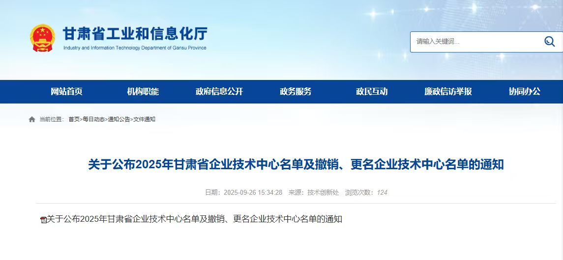 近日,甘肅省工業(yè)和信息化廳發(fā)布《關(guān)于公布2025年甘肅省企業(yè)技術(shù)中心名單及撤銷(xiāo)、更名企業(yè)技術(shù)中心名單的通知》。我公司被甘肅省工業(yè)和信息化廳、甘肅省發(fā)展和改革委員會(huì)、甘肅省科學(xué)技術(shù)廳、甘肅省財(cái)政廳、國(guó)家稅務(wù)總局甘肅省稅務(wù)局聯(lián)合認(rèn)定為2025年甘肅省企業(yè)技術(shù)中心。這一認(rèn)定標(biāo)志著我公司在技術(shù)創(chuàng)新體系建設(shè)、核心技術(shù)研發(fā)及成果轉(zhuǎn)化能力等方面獲得省級(jí)權(quán)威認(rèn)可,躋身全省同行業(yè)技術(shù)創(chuàng)新先進(jìn)行列。