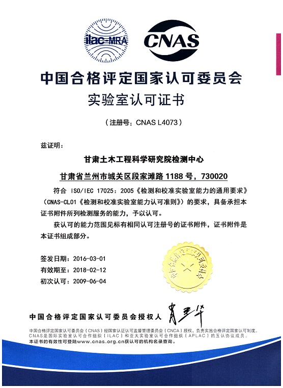 證書編號(hào):CNAS L4073 ,有效期至:2018.2.12。