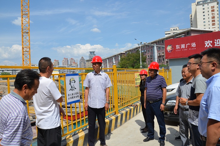 在東湖廣場、盛達金城廣場兩項目現(xiàn)場,章海峰同志一行詳細詢問了工程建設情況和夏季高溫作業(yè)職工的勞動保護措施落實情況,充分的肯定了各施工現(xiàn)場對防暑降溫工作采取的一系列保障措施,并要求各施工現(xiàn)場科學、合理安排好作息時間,進一步落實安全生產(chǎn)責任制,消除各類安全隱患,保證職工身心健康和施工安全。他向一線工作人員們送上了茶葉、飲料等防暑用品,并對我院廣大一線職工戰(zhàn)高溫、斗酷暑,一如既往地堅守在工作崗位上的辛勤工作表示感謝,親切叮囑他們注意安全,保重身體。