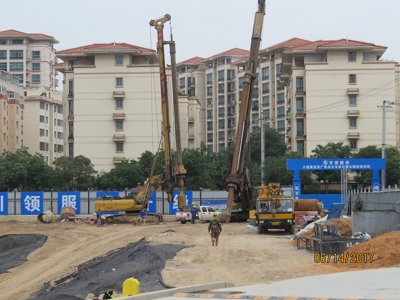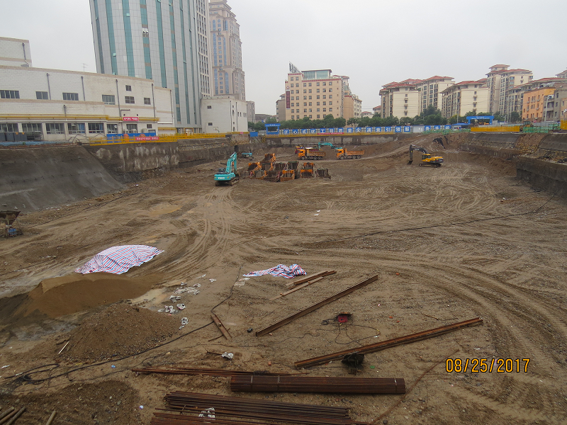 工程總工期913天,預計2019年9月30日竣工。目前工程已完成全部支護樁、冠梁、降水井施工,基坑開挖至項目標高-9m處,預計本月底完成整個基坑開挖與支護工作。